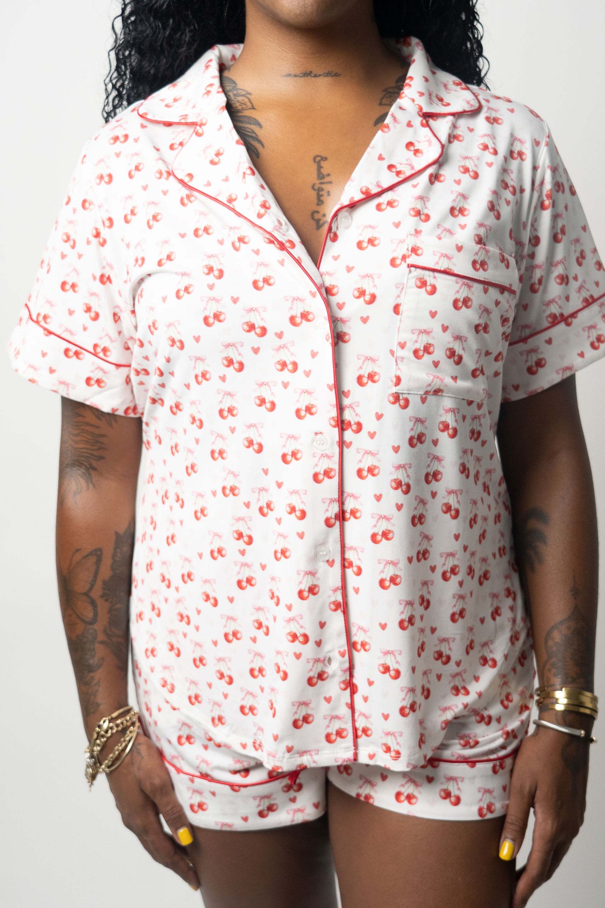Slip into comfort and style with this two-piece pajama set, designed for cozy nights and relaxed mornings. Made from a soft, breathable fabric, this set includes a short-sleeve button-up top and matching shorts for an effortlessly chic loungewear look.